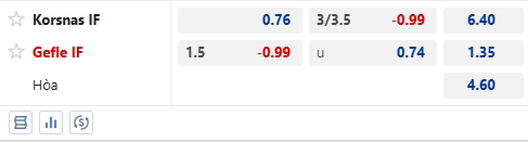 4/6 trận đấu mới đây của Korsnas có tỷ số xỉu 3 1/4. Mặt khác, 6 trận đấu mới nhất của Gefle có không quá 2 bàn/trận và về xỉu 3 1/4.