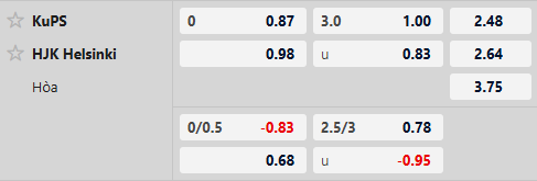 Thông tin tỷ lệ KuPS vs HJK Helsinki: