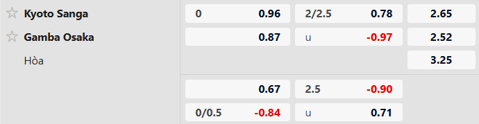 Thông tin tỷ lệ Kyoto Sanga vs Gamba Osaka: