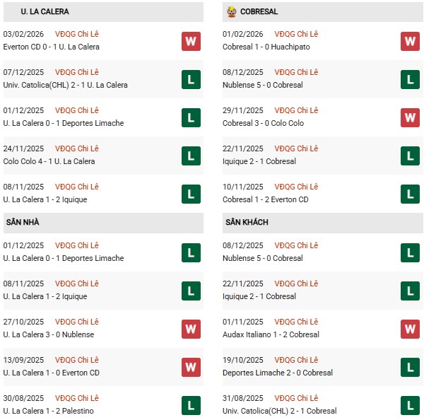- Trên sân nhà, La Calera thắng 4, thua 3 trước Cobresal.