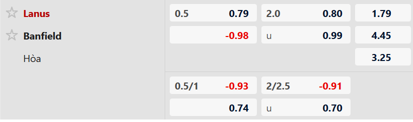 Thông tin tỷ lệ kèo Lanus vs Banfield: