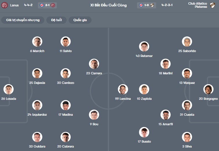 Đội hình dự kiến Lanus vs Platense: