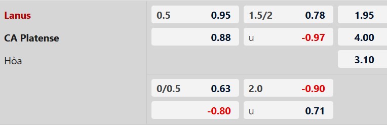Thông tin tỷ lệ kèo Lanus vs Platense: