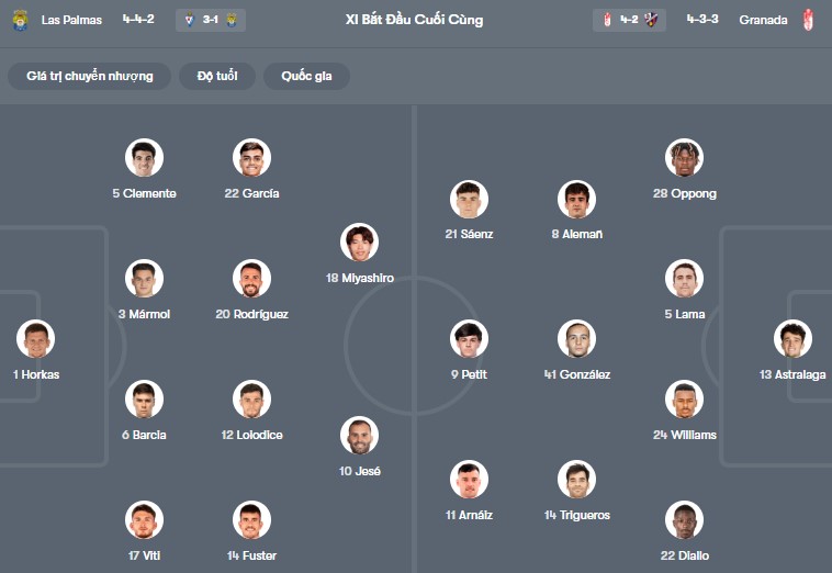 Đội hình dự kiến Las Palmas vs Granada: