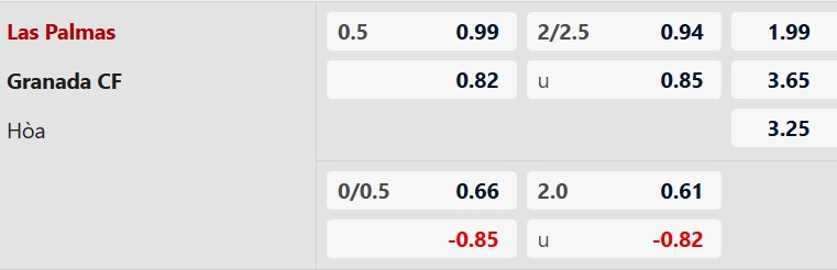 Soi kèo châu Á Las Palmas vs Granada: