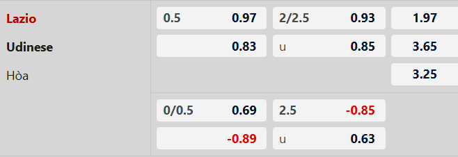 Nhận định kèo châu Á Lazio vs Udinese: