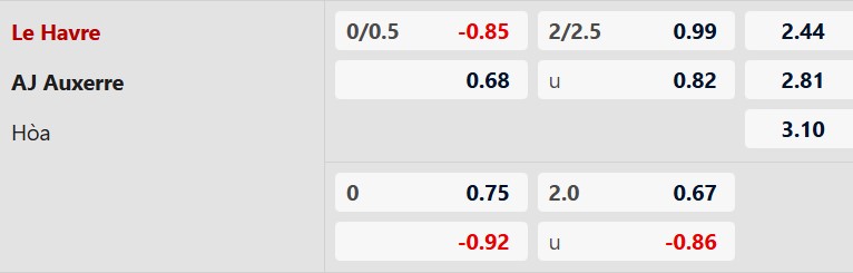 Thông tin tỷ lệ kèo Le Havre vs Auxerre: