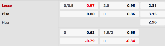 Thông tin tỷ lệ kèo Lecce vs Pisa: