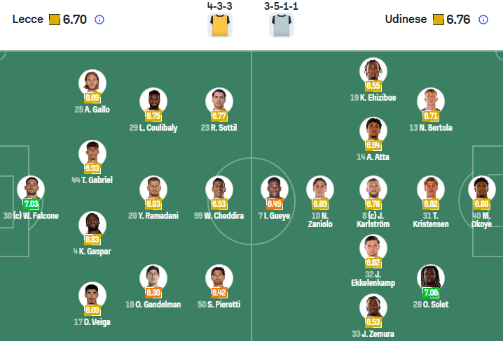 Lecce bước vào trận đấu với tâm lý không mấy thoải mái sau thất bại tối thiểu 0-1 trước Torino. Dù cầm bóng vượt trội (58%) và tung ra tới 14 cú sút, nhưng khả năng dứt điểm yếu kém khiến họ không thể ghi bàn. Đây cũng là hình ảnh quen thuộc của Lecce trong thời gian gần đây.