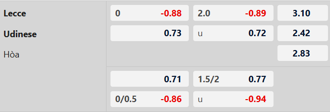 Thông tin tỷ lệ cược Lecce vs Udinese: