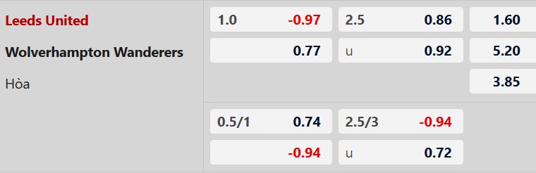 Soi kèo châu Á Leeds United vs Wolves: