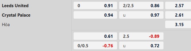 Soi kèo châu Á Leeds vs Crystal Palace: