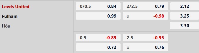 Thông tin tỷ lệ kèo Leeds vs Fulham: