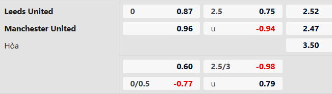 Thông tin tỷ lệ kèo bóng đá Leeds vs MU: