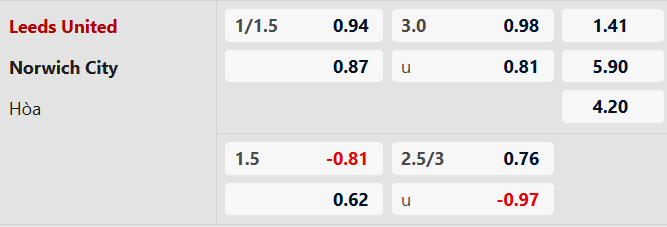 Cả trận không quá 3 bàn: 4/5 lần đối đầu giữa hai đội gần đây chỉ có nhiều nhất 3 bàn thắng. Tình trạng tương tự xảy ra ở 4 trận gần đây của Leeds và 7/8 trận vừa qua của Norwich.