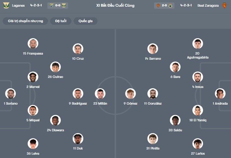 Số liệu thống kê về Leganes gặp Zaragoza: