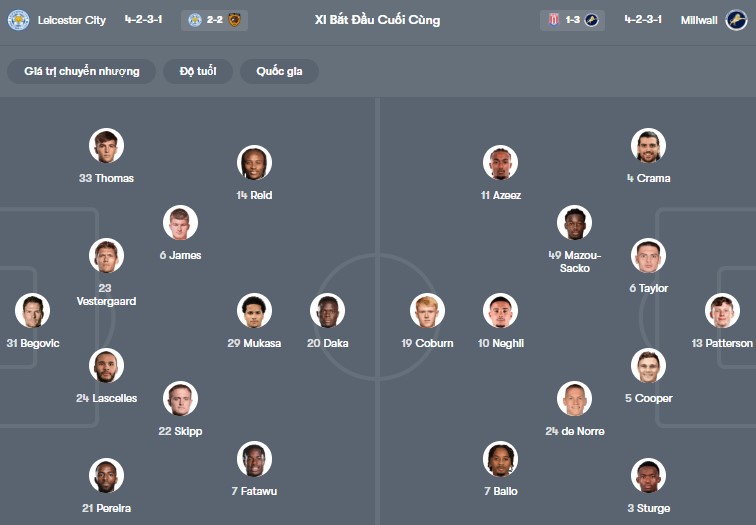 Đội hình dự kiến Leicester City vs Millwall:
