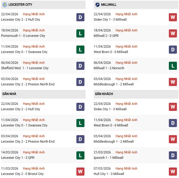 Trận đấu tại sân King Power giữa Leicester City và Millwall mang những cung bậc cảm xúc hoàn toàn trái ngược. Leicester City, cựu vương Ngoại hạng Anh, vừa chính thức phải đón nhận kết cục cay đắng nhất lịch sử CLB khi rơi xuống hạng 3 sau trận hòa 2-2 trước Hull City. Với tâm lý rệu rã và không còn mục tiêu chiến đấu, Bầy cáo đang trải qua chuỗi ngày đen tối với phong độ cực kỳ nghèo nàn.