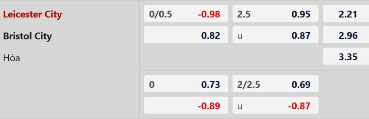 Thông tin tỷ lệ kèo Leicester vs Bristol City: