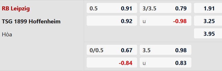 Thông tin tỷ lệ kèo bóng đá Leipzig vs Hoffenheim: