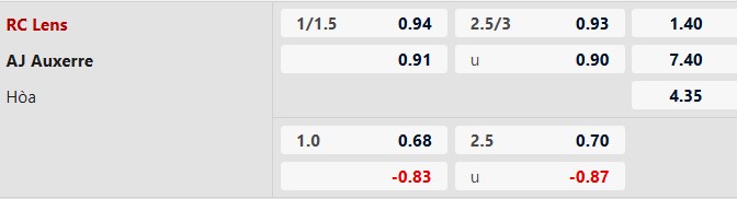 Thông tin tỷ lệ kèo Lens vs Auxerre: