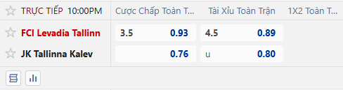 Thông tin tỷ lệ Levadia vs Tallinna Kalev:
