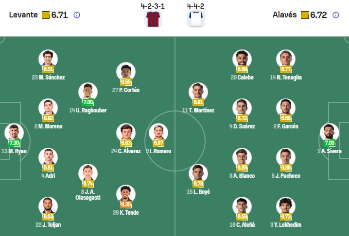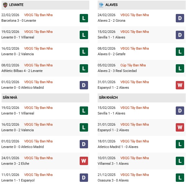 - Levante thắng 3, hòa 4, thua 3 trong 10 trận gặp Alaves gần đây.