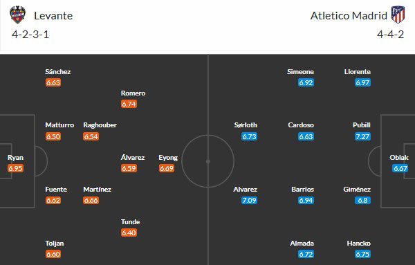 Thông tin lực lượng Levante vs Atletico Madrid: