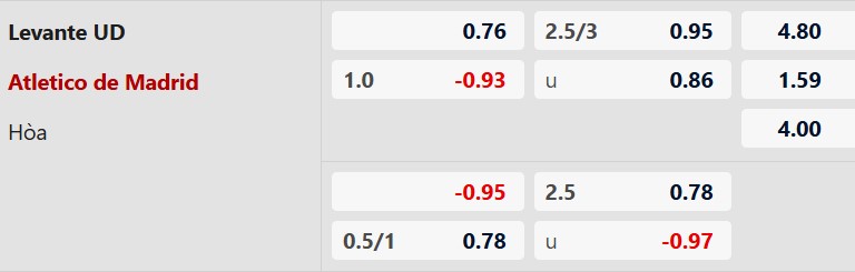 Soi kèo châu Á Levante vs Atletico Madrid: