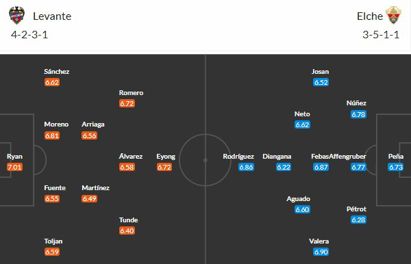 Điều thuận lợi nữa cho Levante là đối thủ của họ đang không có phong độ tốt. Thống kê cho thấy, Elche chỉ thắng được 2/13 trận đấu gần đây ở La Liga, còn lại họ hòa 5 và phải nhận tới 6 thất bại. Những kết quả tồi tệ đó khiến Elche rơi tự do xuống vị trí thứ 8 tại bảng xếp hạng La Liga.