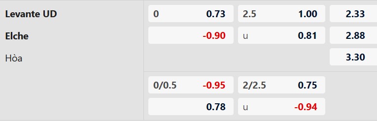 Soi kèo châu Á Levante vs Elche: