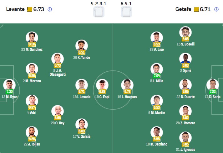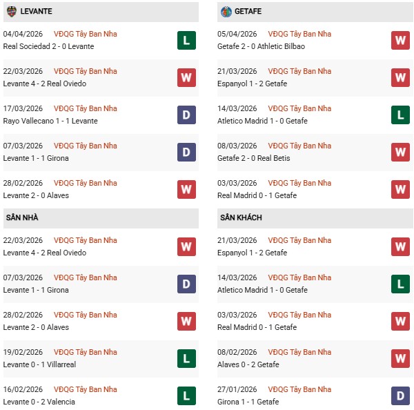 - Levante thắng 3, hòa 4, thua 3 trong 10 trận gặp Getafe gần đây.