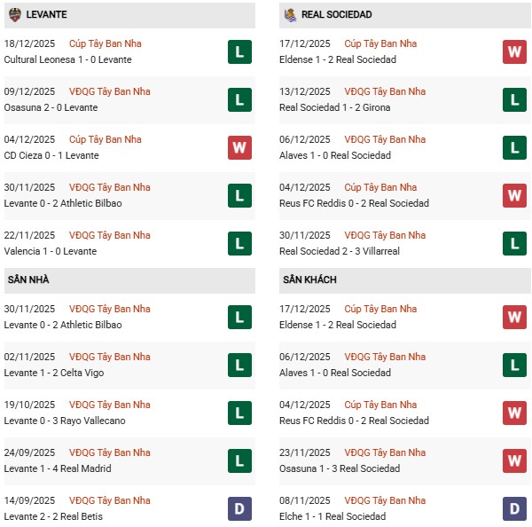- Trên sân nhà, Levante thắng 5, thua 2 trước Sociedad.