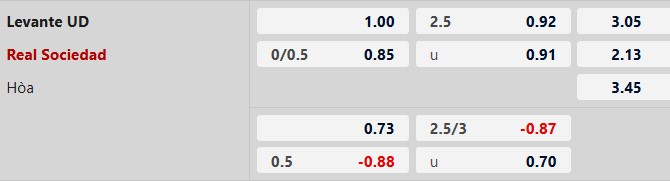 Thông tin tỷ lệ bóng đá Levante vs Sociedad: