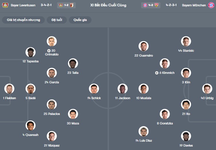 Đội hình dự kiến Leverkusen vs Bayern Munich: