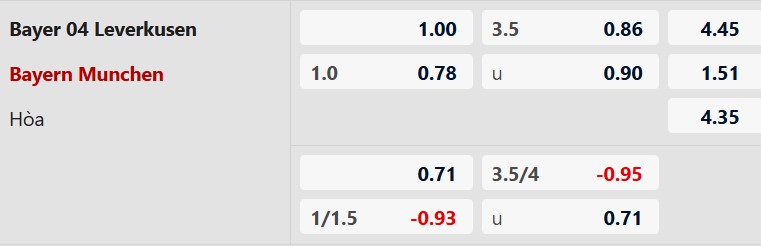 Soi kèo châu Á Leverkusen vs Bayern Munich: