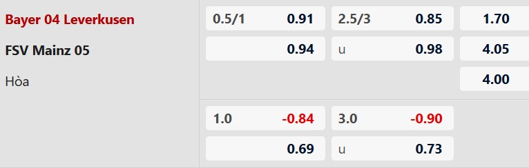 Soi kèo tài xỉu Leverkusen vs Mainz: