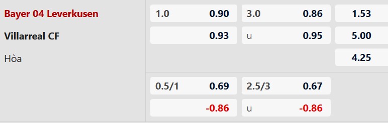 Thông tin tỷ lệ kèo Leverkusen vs Villarreal: