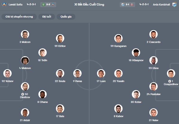 Đội hình dự kiến Levski Sofia vs Arda Kardzhali: