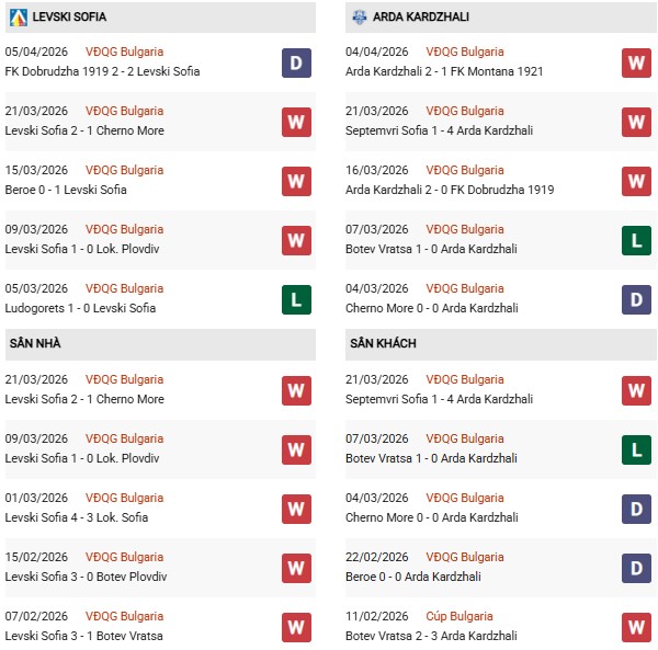 - Trên sân nhà, Levski Sofia thắng 5, thua 2 trước Arda Kardzhali.