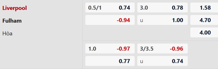 Thông tin tỷ lệ kèo bóng đá Liverpool vs Fulham: