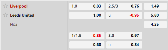 Thông tin tỷ lệ Liverpool vs Leeds: