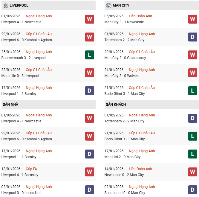 Dù từng thua 0-3 ở lượt đi mùa này, Liverpool lại đang sở hữu chuỗi 5 trận sân nhà bất bại trước Man City tại Premier League. Với lợi thế Anfield, phong độ ghi bàn đang lên cao và tinh thần hưng phấn, Liverpool có cơ sở để tin vào một kết quả tích cực trước đối thủ đang gặp vấn đề khi làm khách.
