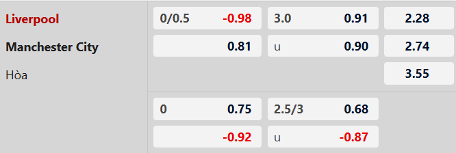 Thông tin tỷ lệ kèo bóng đá Liverpool vs Man City: