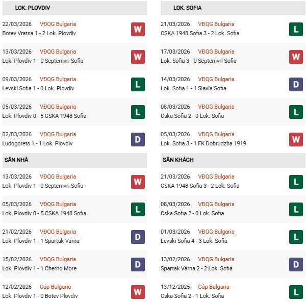 Thống kê phong độ Lokomotiv Plovdiv vs Lokomotiv Sofia: