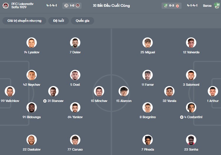 Đội hình dự kiến Lokomotiv Sofia vs Beroe: