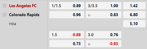 Thông tin tỷ lệ Los Angeles FC vs Colorado Rapids: