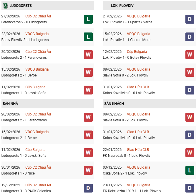 Thống kê phong độ Ludogorets vs Lokomotiv Plovdiv:
