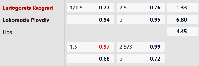 Soi kèo châu Á Ludogorets vs Lokomotiv Plovdiv: