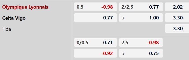 Thông tin tỷ lệ kèo bóng đá Lyon vs Celta Vigo: